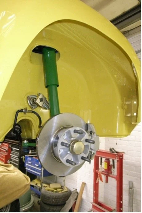 914-4. Mis amigos que usan suspensiones delanteras de 911 SC/Carrera 3.2, simplemente reconstruyeron sus pinzas traseras con espaciadores, y fijaron discos ventilados de 911 (de 5 pernos) para poder usar aros/rines Fuchs. Para fijar discos ventilados de 911, hay que usar bocinas (tulipanes) de 914-6 o re-perforar las originales.